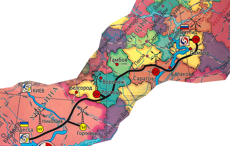 аммиакопроводом находится на предприятии Тольяттиазот. На огромном экране видны все участки трубопровода – положение запорной аппаратуры, показания манометров и газоанализаторов и другие технические параметры, необходимые для безопасной транспортировки аммиака. Через каждые 5,2 км поток аммиака можно остановить. А если нажать кнопку в Тольятти, то можно остановить весь поток на любом участке трубопровода, в том числе и на территории Украины.
